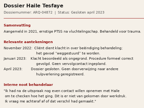 Samenvatting relevante informatie dossier Haile Tesfaye